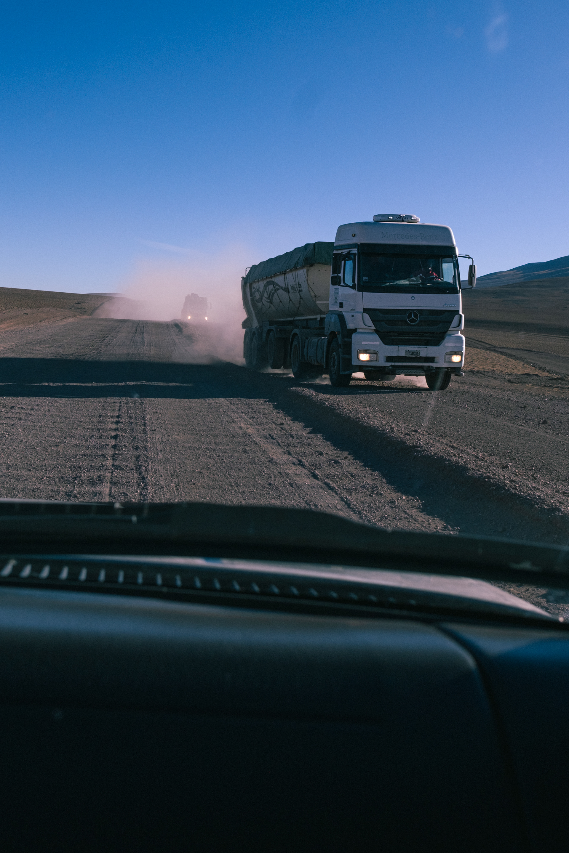 Camion carichi di salamoia attraversano a ogni ora le strade sterrate della regione
